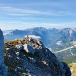 After meeting at the Mangart Saddle and checking the climbing and hiking gear, we head towards the steep mountain. The trail is first easy but about half an hour later we'll enter the climbing section of the route. We'll put on our climbing harness and a helmet to continue with the ascent of the vertical. Since the route is fairly short, 2.5 hours for the ascent and 2 hours for the descent, it is one of the first recommended via ferrata routes for beginners. The trail is throughout panoramic, while the views are just breathtaking.