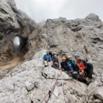 Explore the massive mountain that raises proudly above Kranjska Gora. Although there are several secured routes that lead to the top, one of the most intriguing ones is definitely the “Kopiščar” route. This route ascends sharply above the Vršič Mountain Pass, leading through a natural window to the other side of the mountain and to the panoramic top. With its perfect mix of demanding, elegant, steep, and attractive, the Prisojnik via Ferrata is to be fondly remembered for a long time.