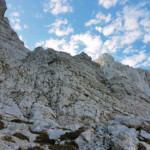 After parking by the Aljaž Hut in the Vrata Valley, we walk along an easy trail underneath the great one-kilometer high and three-kilometer wide Triglav North Face, the most spectacular mountain face in Slovenia. We enter the wall fully equipped with the climbing gear and start an epic eight-hour journey up the vertical Čop Pillar, the central route in the Triglav Pillar. When we finally reach the top at the Kugy Ledge, we are rewarded with spectacular views of the vertical world up there. We descend down over the Čez Prag Route to arrive again at the Aljaž Hut.